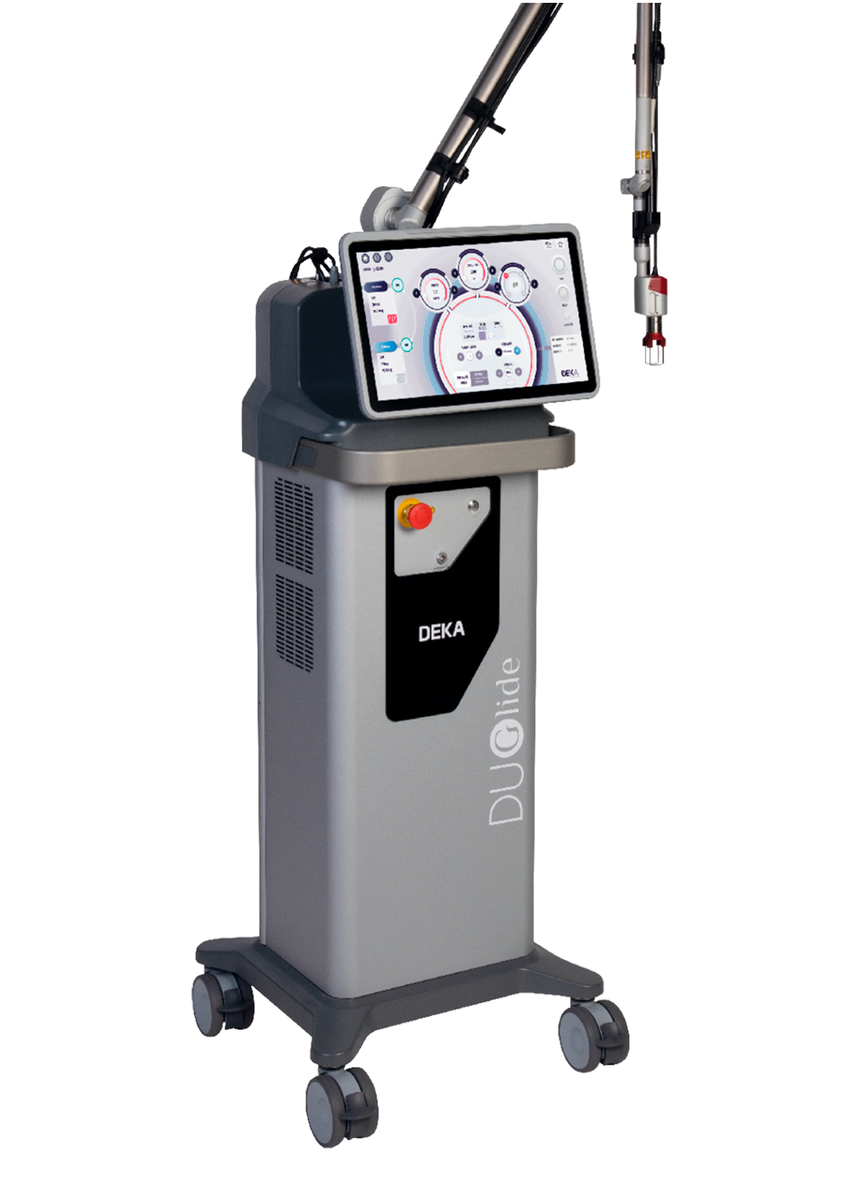 Tecnología láser que combina dos longitudes de onda (CO2 y 1540nm) para maximizar la eficacia en aplicaciones dermatológicas y cuenta con piezas de mano específicas para ginecología.