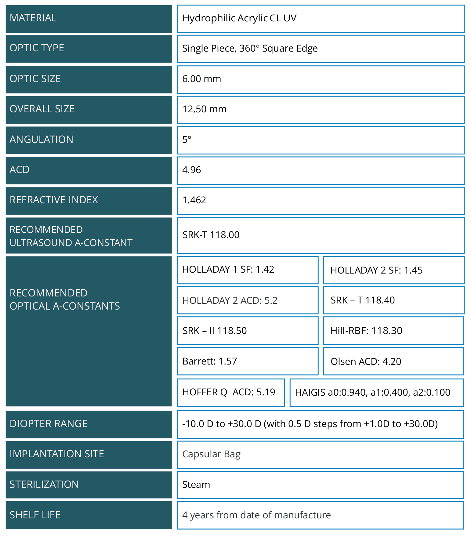 Las LIOs acrílicas hidrofílicas Eyecryl están destinadas a ser implantadas en el saco capsular de la cámara posterior del ojo para la corrección visual de la afaquia secundaria a la extirpación del cristalino en pacientes adultos con cataratas.
