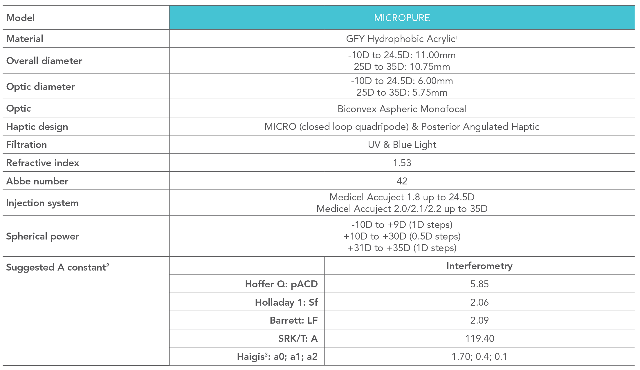 MICROPURE es un implante intraocular monofocal basado en una estabilidad comprobada de plataforma de 4 bucles cerrados con una materia prima acrílica hidrófoba confiable.