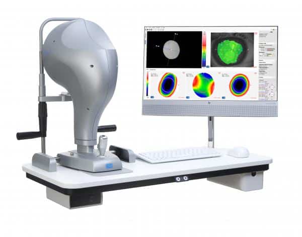 Utilizando un sistema de topografía de reflexión basado en un disco de Plácido de 22 anillos, Osiris-T es capaz de medir la morfología y el componente refractivo corneal mediante los mapas de curvatura sagital, curvatura tangencial, elevación y potencia. La disponibilidad de parámetros de síntesis consolidados hace que el seguimiento y diagnóstico del queratocono sea sencillo e intuitivo. La integración de topografía y aberrómetro permite el cálculo de la componente interna del frente de onda.
