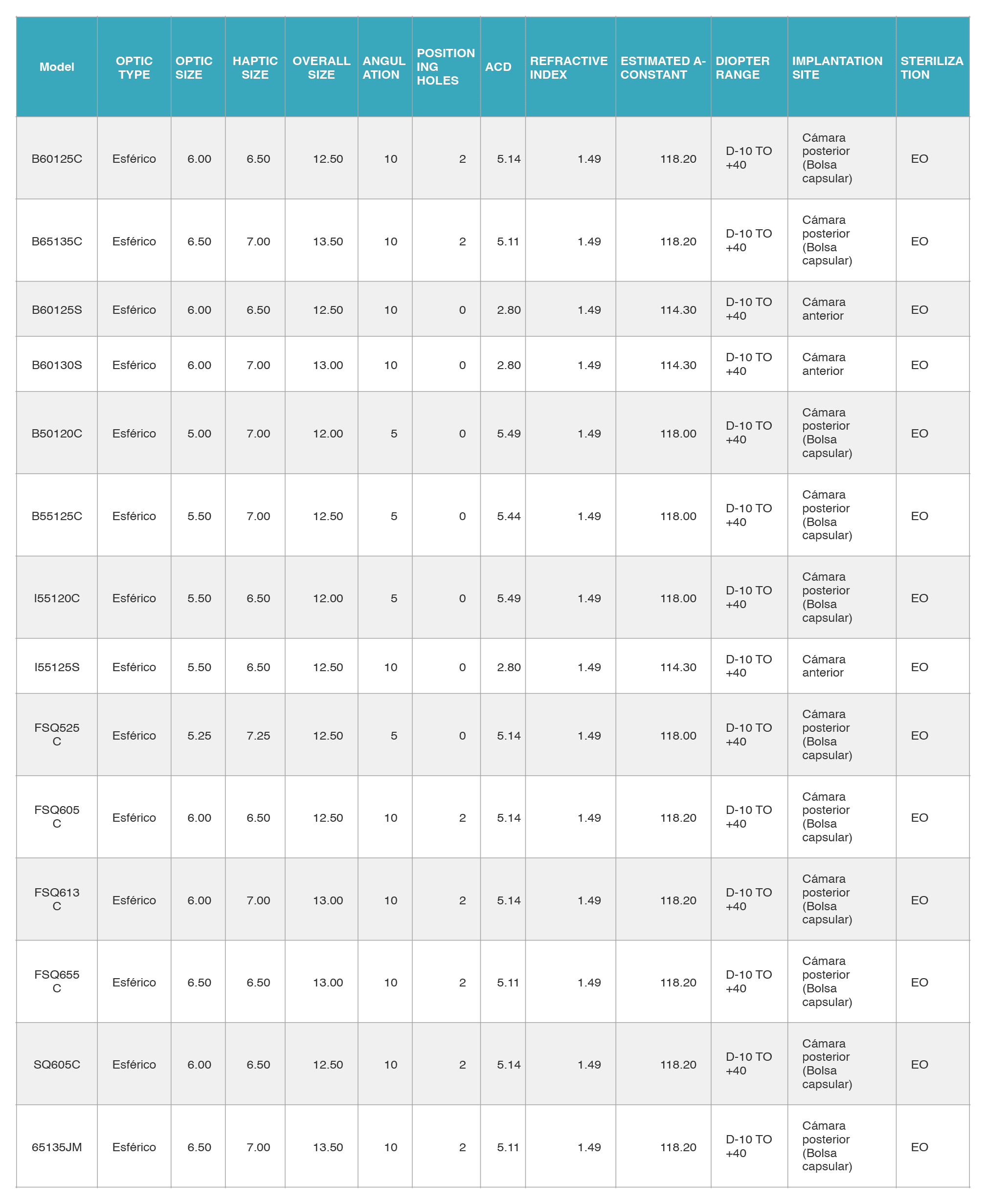 Las lentes intraoculares Bio Vision PMMA están fabricadas con polimetacrilato de polimetilmetacrilato (PMMA) de grado médico aprobado por la FDA. Las LIOs de una sola pieza tienen una háptica altamente flexible. Todas las LIO de PMMA se fabrican con tecnología CAD y CAM en tornos CNC de precisión y fresadoras CNC y se comprueban con interferómetro láser para una mejor calidad óptica. Los poderes dióptricos están disponibles dentro de los rangos indicados en cada modelo, en incrementos de 0,5 dioptrías.
