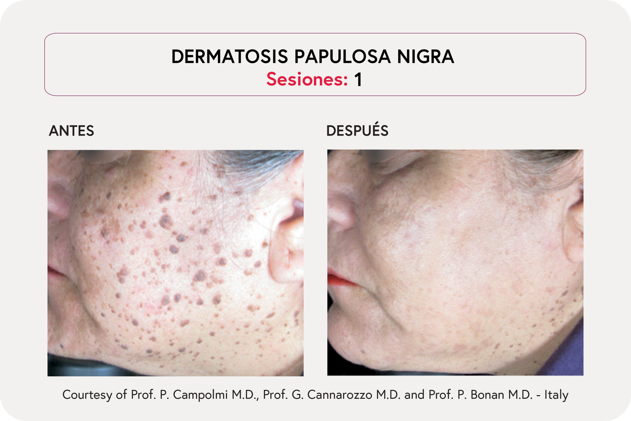 - Lesiones Pigmentadas y Fotodaño: Elimina manchas solares y discromías.
