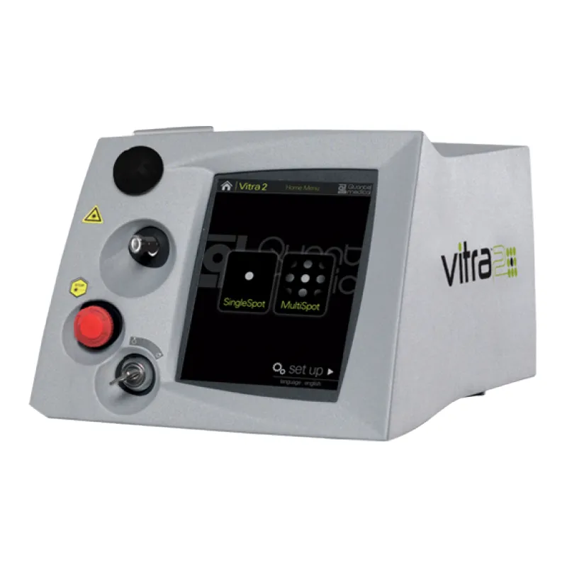 Vitra 2 ofrece una amplia gama de parámetros adaptados al tratamiento de patologías de la retina. Adaptable a lámparas de hendidura tipo Haag Streit o Zeiss.